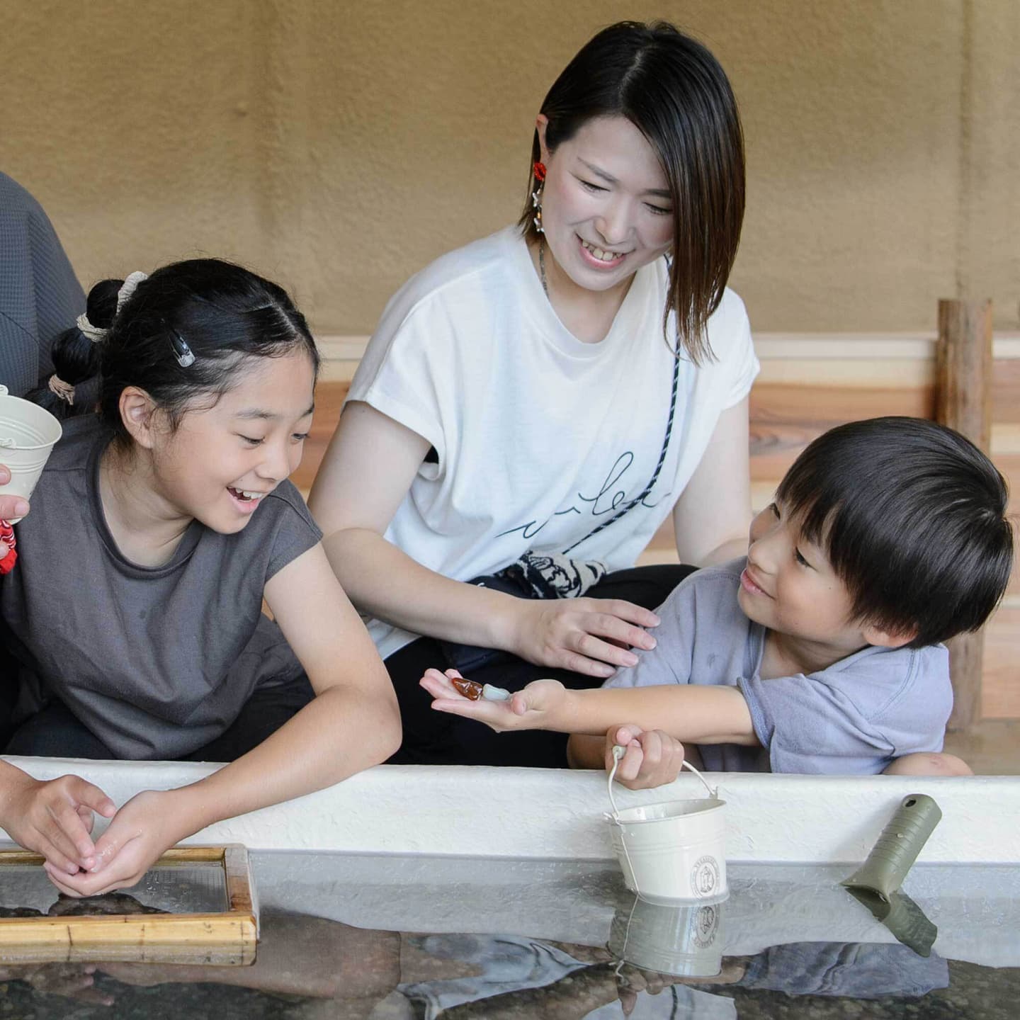 雨でも安心の完全屋内型アトラクションが、福井県あわら市の温泉街に登場!宝石の原石をスコップで掘ったり、砂利をふるって探したり、ワクワクの宝探し体験が家族みんなで楽しめます。流れる川を再現した「リバーエリア」では、地元・福井県産の川砂利をふるって宝石探し。鉱山を模した「鉱山エリア」では、砂に埋まった原石をスコップで発掘。