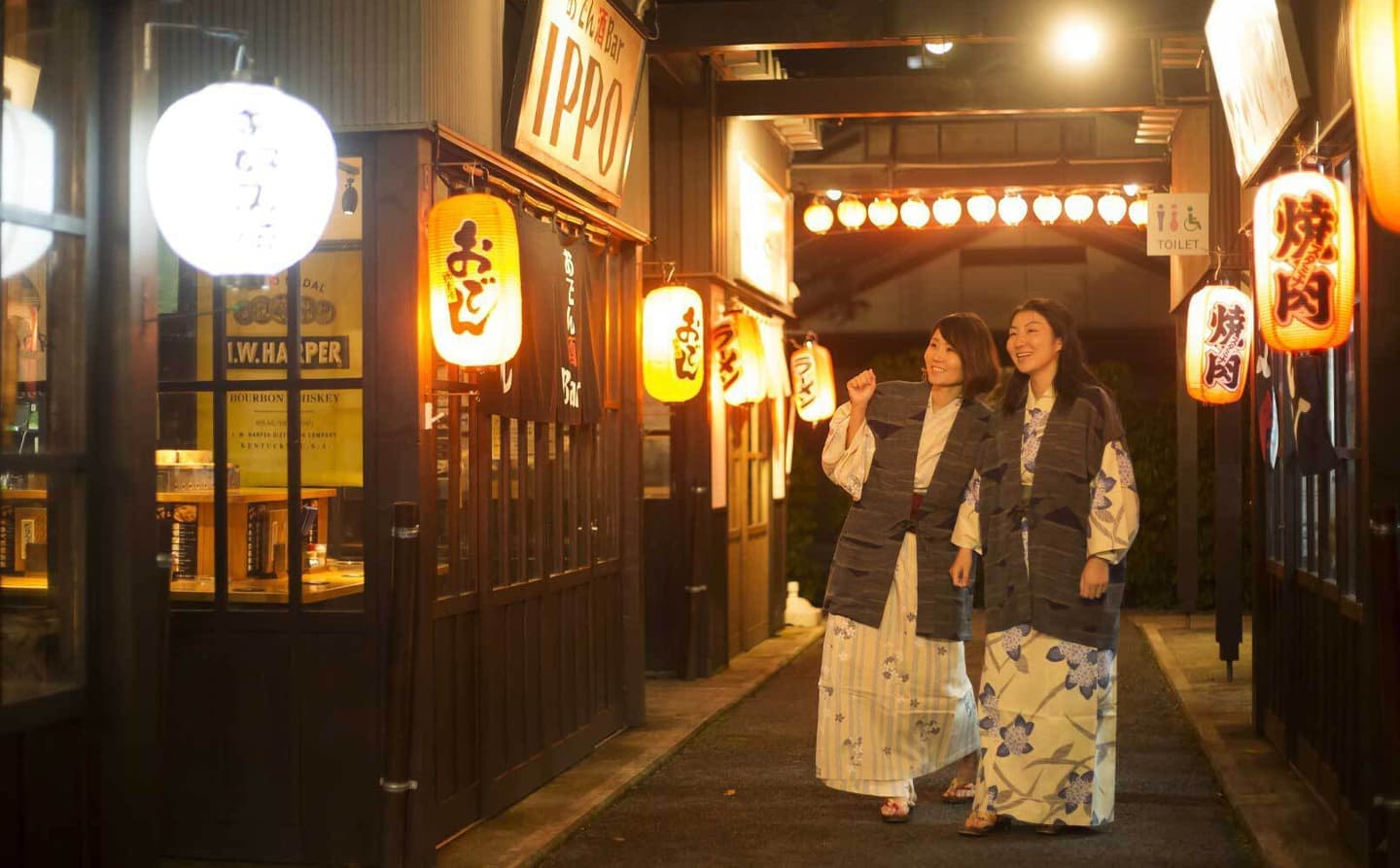 あわら温泉街の中心に位置する、屋台スタイルのグルメスポット「湯けむり横丁」。蕎麦や海鮮、焼鳥、餃子、ラーメン、フレンチなど、個性豊かな10店舗が集まり、店主こだわりの味を楽しめます。カウンター中心の小さな店構えは、旅先ならではの出会いやふれあいも魅力のひとつ。食を通じて、あわらの温もりを感じられる人気スポットです。