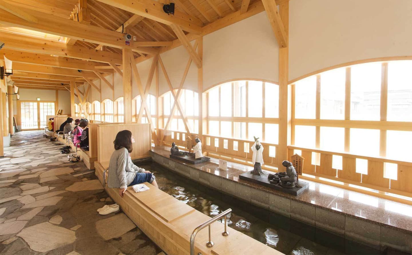 すべての浴槽には福井県産の「笏谷石(しゃくだにいし)」を使用。石ならではの風合いと、肌にやさしい湯ざわりが心地よく、散策途中の休憩にも最適です。